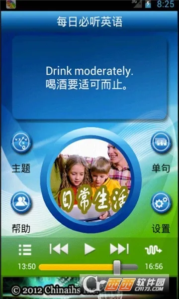 2、播放模式强大,支持正常播放、单句或整体循环,首创一快一慢一停顿播放方式,4种语速设置,超大文本或列表同步显示,支持全屏播放。