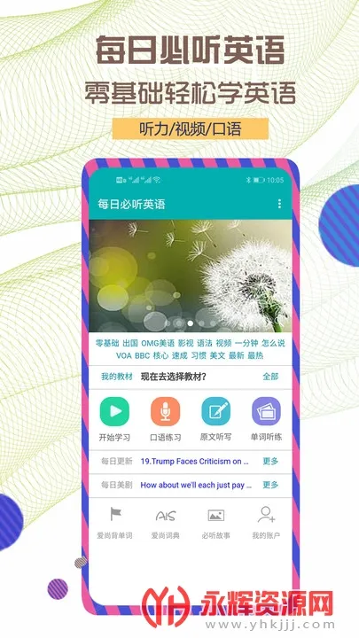 每日必听英语是一款手机英语学习软件,提供海量听力资料、口语教材。有强大学习模式,支持多种收听方式,还有口语打分、原文听写等功能,能自动评估发音,帮助用户轻松学英语,告别哑巴英语。