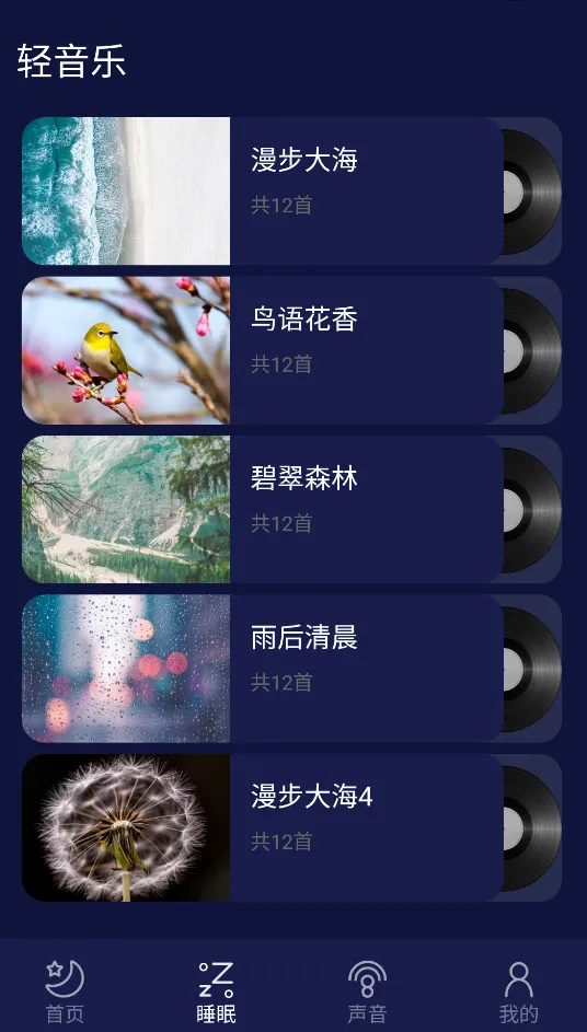 3. 专辑丰富实用,收录百余张专业制作的助眠专辑,涵盖不同场景与需求,支持自定义播放时长与定时关闭,避免整夜播放影响深度睡眠周期。