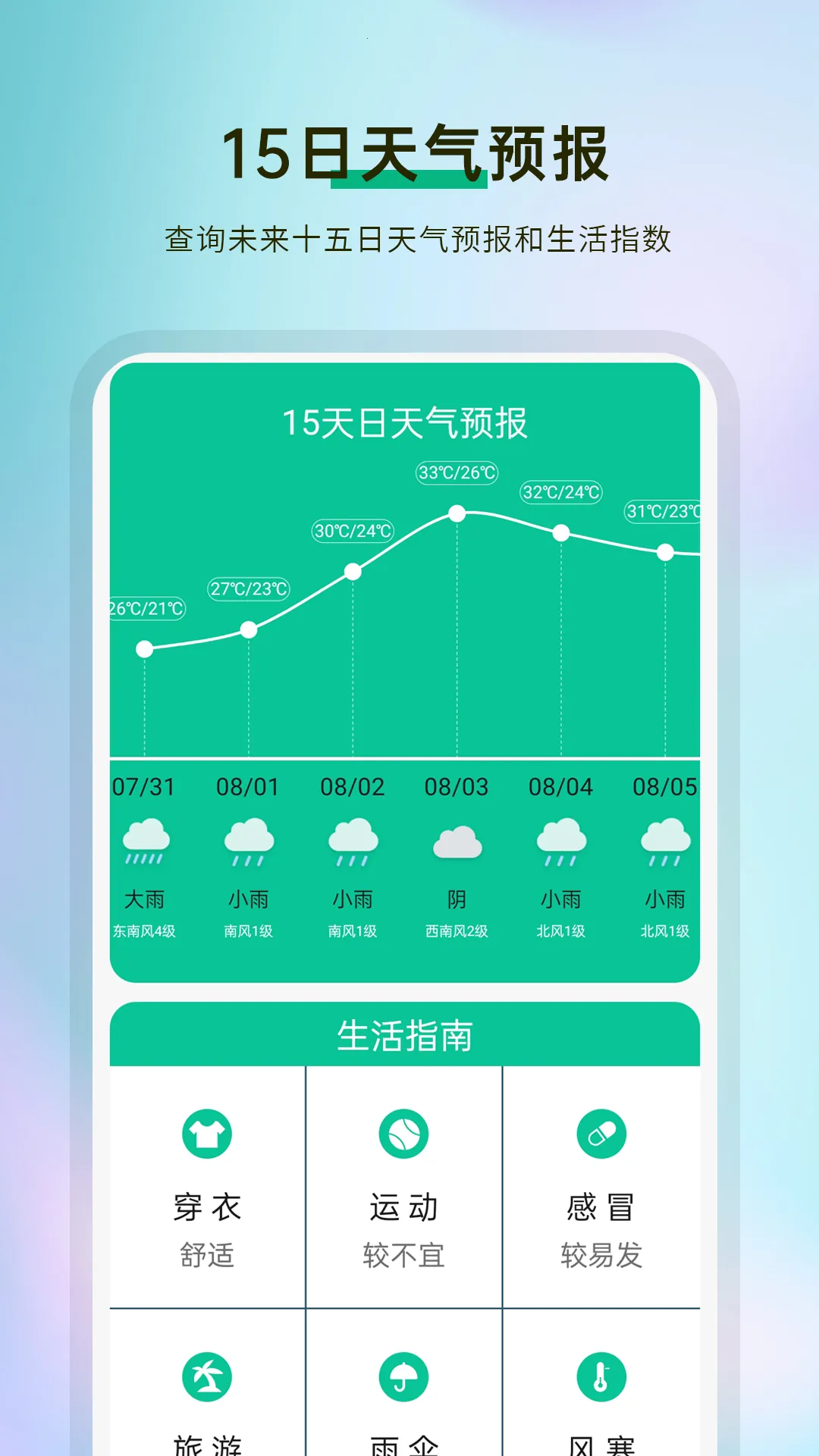 你是否想提前知晓未来15天的天气情况,以便更好地规划出行和生活安排?有这样一款工具就能满足你的需求。它能提供未来几小时至15天的天气预报,让你轻松了解温度、降水、风力等变化趋势。比如你计划下周出游,通过它就能提前知道那几天的天气,合理准备衣物和装备。它还会实时监测所在地的空气质量与污染指数,助你及时做好健康防护。而且,它能快速精准锁定城市,不管你身处何地,都能实时获取天气信息。遇到暴风雨、寒潮等恶劣天气,系统会第一时间推送预警,提醒你提前防范,保障出行安全。有了它,出行安排更可靠,生活也更方便,赶紧试试吧。