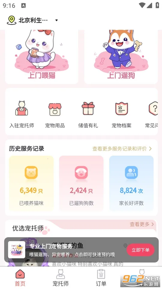 如果你是铲屎官,经常担心出门在外或工作忙碌时,毛孩子没人照顾,那宠好伴这款宠物上门服务平台绝对值得了解。它能提供上门遛狗、上门喂猫、逗猫陪玩等各种服务。平台同城覆盖广,不管在大城市还是小城市,都能享受。