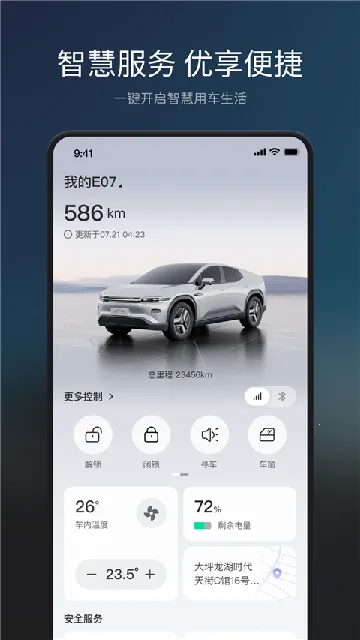 1. 全方位服务:为长安启源E07车主及爱好者打造智能服务平台,提供远程控车、车辆状态监控、故障诊断预警、预约服务等,涵盖用车各方面。