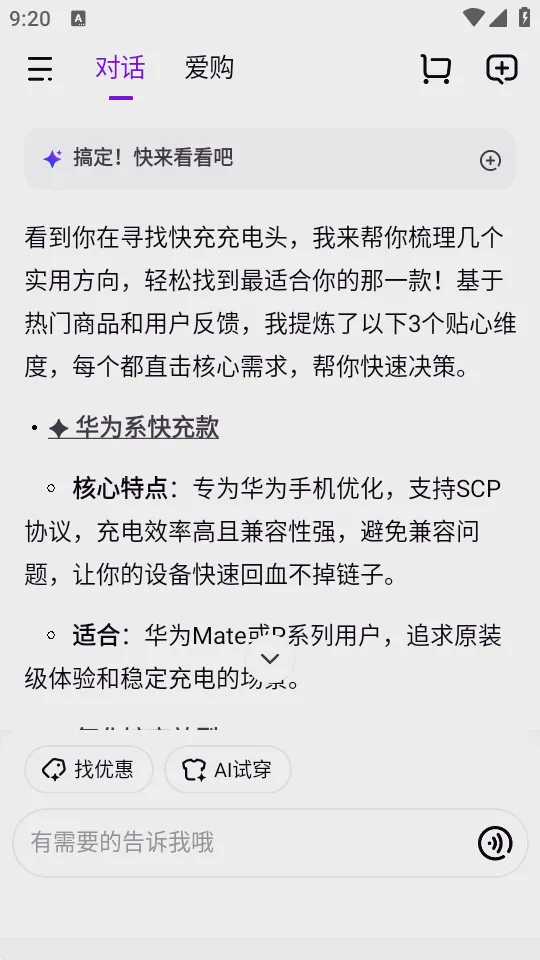 2. 智能导购:告别关键词搜索,简单说出需求,就能召唤私人买手,精准匹配商品。