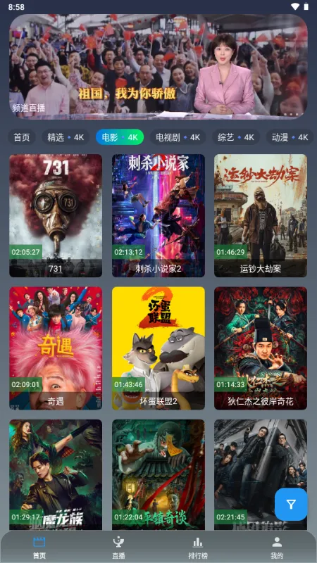 3. 功能便捷:提供便捷的搜索筛选和播放功能,帮助用户快速找到心仪的影视作品,轻松享受追剧的乐趣。还能通过简单操作看直播,如点击下方直播按钮即可看电视直播,点击屏幕可更换节目和播放源。