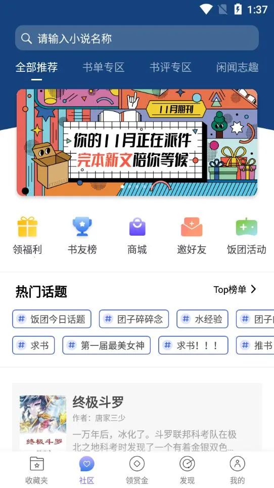 3. 互动社区各类小说大触倾心吐槽,可快速求书,自由评论,在书海中以文会友。