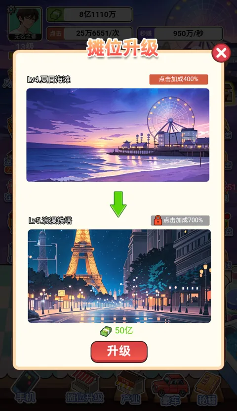 2. 离线收益,轻松积累财富:升级后摊位和公司可自动赚钱,即便离线也不影响收益,轻松积累财富。