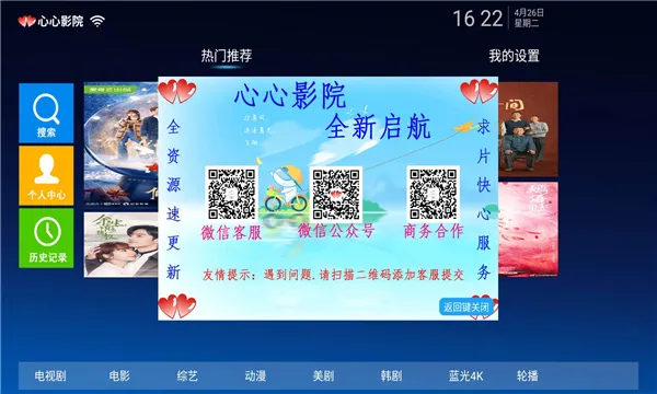 心心影院能随时提供优质影视播放乐趣,自动适配网络,每日更新精彩内容,可缓存资源。无需登录,操作轻松,有强大搜索、推荐功能,还能看直播,能找到上次播放记录,实用性强。