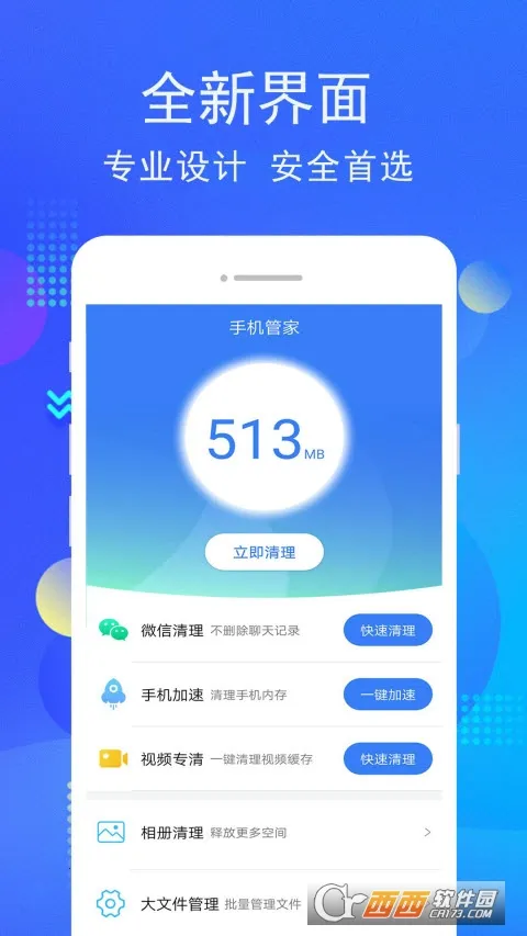 2. 智能识别清理:可智能识别手机上的垃圾文件,一键清理释放内存空间,加速手机运行速度。