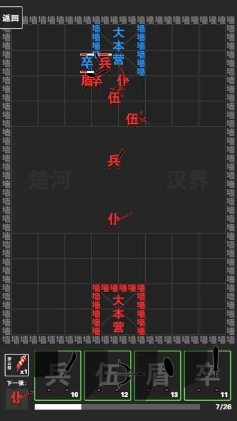 1、丰富士兵类型:可在游戏界面获取兵卒盾伍等多种角色,添加不同士兵加入战斗,如兵、车、盾等,为战斗增添多样策略。