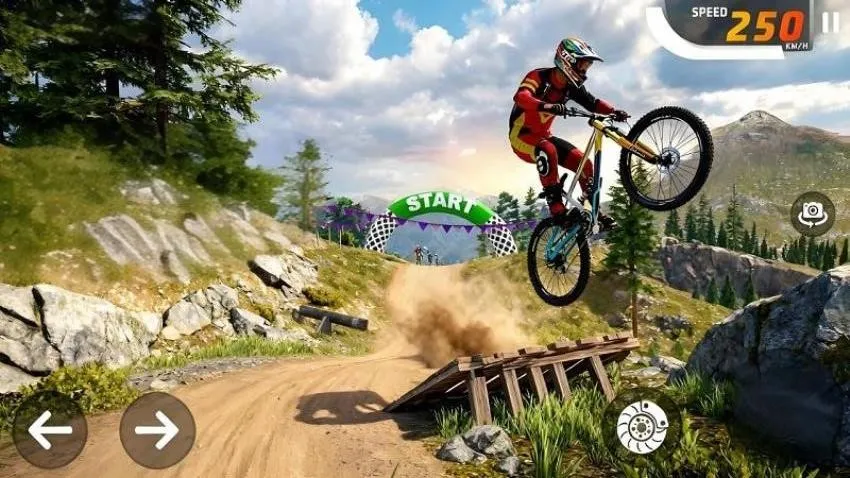 3、逼真物理引擎,还原骑行质感,车身重心变化与地形互动反馈细腻。从泥泞丛林到陡峭岩壁,多样赛道遍布跳台石堆等障碍,动态天气更添沉浸感。