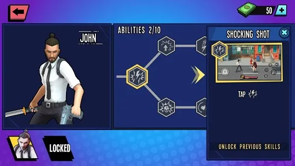 3、战斗能带来经验提升,帮助解锁新的超级英雄技能,让战斗能力更上一层楼,玩家可借此成为绝对的超级英雄约翰。