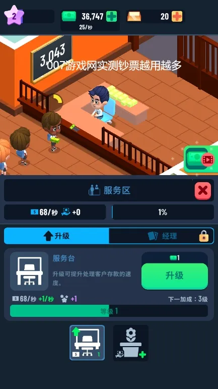 这款游戏能让你轻松体验银行管理。它是管理模拟游戏,主题围绕银行业,能让你了解平常接触不到的银行知识。布局轻松简单,随时随地都能玩。游戏场景丰富多样,可随意选择。亮点也很多,简单有趣的模拟管理,能让你享受扩充银行的快乐。还有丰富故事和道具,放置玩法轻松,能赚取利润。操作简单,能增设柜台服务顾客。通过这些玩法,你就能一步步升职,快来下载体验吧!