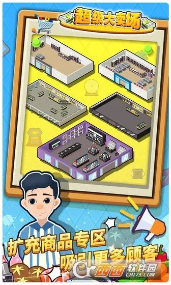 超级大卖场是一款模拟经营游戏,玩家从经营小型超市起步,通过扩建专区、升级商品、雇佣员工等方式打造商业帝国。游戏有3D画风、丰富商品,操作简单易上手,能让你体验超市经营乐趣,感受白手起家的成就感。