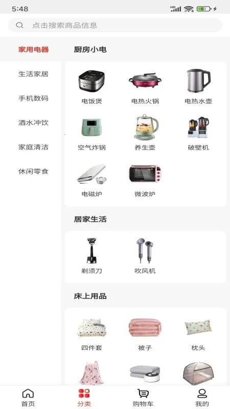 2、简洁清晰的商品分类,能让用户快速定位查找所需商品。