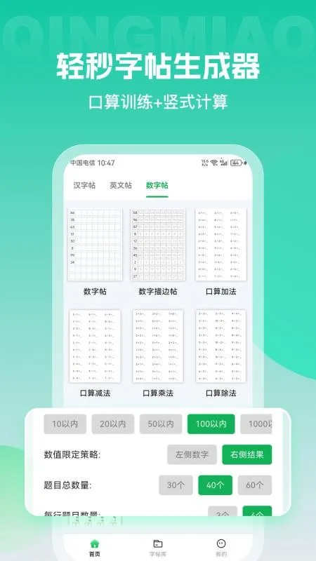 轻秒字帖生成器 2026 官方最新版是面向师生的字帖定制工具。能智能生成多种字体字帖,有丰富模版,支持个性化定制。可临摹训练、选择练习模式,还能高清打印,助力提升书写与运算水平,界面简洁易操作。