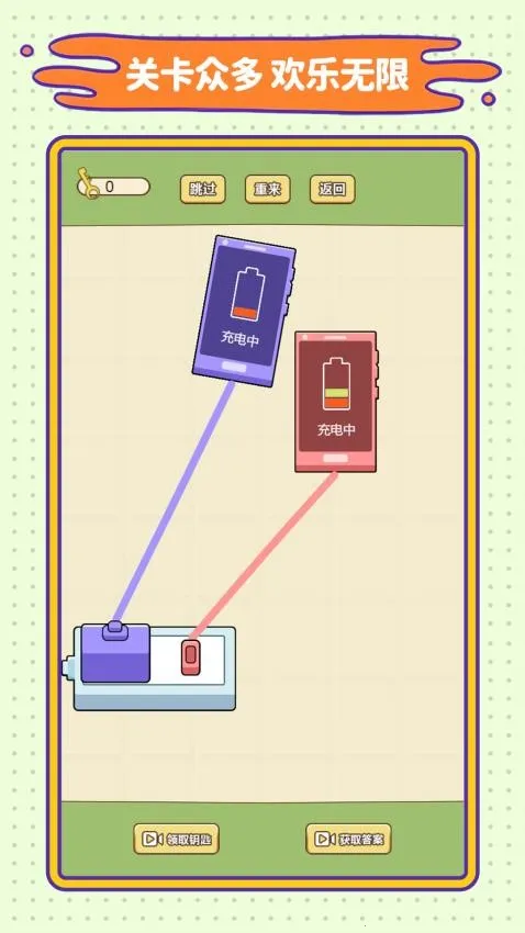 连线我巧棒安卓版是一款竞技闯关游戏,有轻松模式。玩家要在各种充电解谜关卡中,通过找连接优势、关注插头大小等完成挑战,还能获道具、用提示,按攻略在绝境关卡规划连线策略。