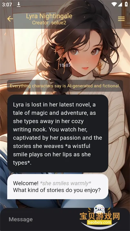 幕间Mujian AI聊天v1.0 手机版幕间Mujian是一款女性向AI聊天社区平台,高度自由,玩法多样。有丰富故事人物可选,支持100ai互动卡,可随心选择小手机、ai游戏。具备多样功能,如聊天、音乐播放、装修美化等,还有独特API设置优势。