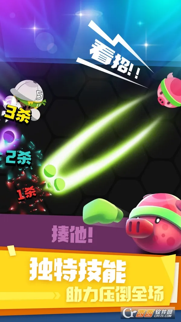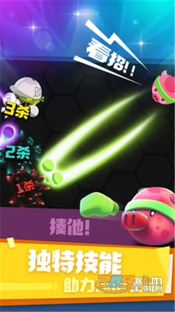 2. 丰富的场景与道具:战斗场景不局限于擂台,可能在吊桥丛林等多样场地进行。地图中还会刷新加速一击必杀等强化道具,让战局充满变数。
