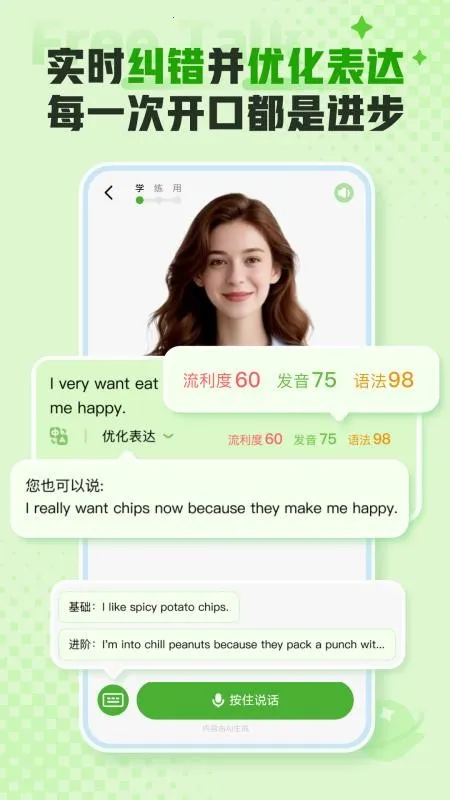 FreeTalk安卓版是一款全面专业的AI英语教学软件,为各年龄段用户提供海量学习资源。能根据水平和目标开展教学,有课程推荐、多种学习类型等功能,助用户轻松实现英语水平突破。