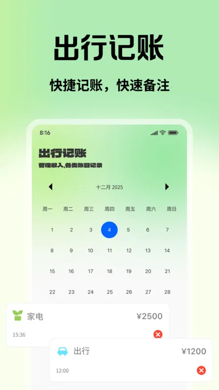 4、手动添加不同消费信息,账目记录很简单,还能进行账单分享。