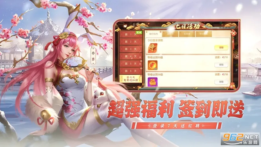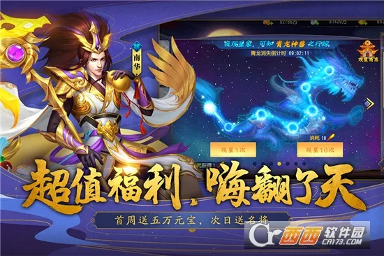 游戏福利丰厚,新人玩家上线即可免费领取澄将以及其他海量福利。每日登陆有惊喜,7天送任选橙将;军团红包、拍卖分红,海量元宝免费拿;至尊VIP特权,专属福利,红将任选。
