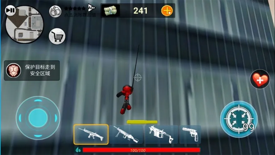 《火柴人绳索英雄》是一款令人热血沸腾的动作冒险手游。玩家扮演英雄,利用绳索穿梭城市,守护安宁。战斗超刺激,要面对各类敌人近身格斗或施技能。角色设计独特,每个英雄有专属技能,可依战斗风格挑选。城市环境细腻,任务丰富多样,始终充满新鲜感。操作简单易上手,滑动点击就能控制角色。还能收集资源买装备道具,探索秘密任务和解谜关卡。3D画面精美,有大量强力武器、独特技能系统与服装升级选项。总之,它玩法丰富,乐趣十足,是冒险爱好者不容错过的佳作,能让人尽情享受动作游戏的畅快体验,沉浸在精彩的火柴人世界。