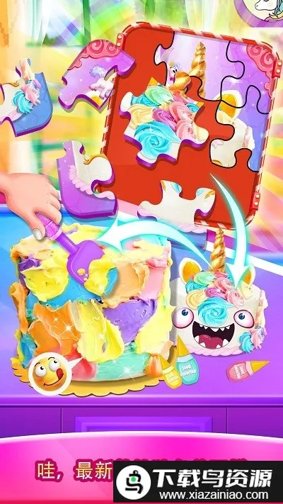 如果你想体验制作美味独角兽蛋糕的乐趣,那这款游戏绝对值得一试!它对新手超友好,一开始就会给详细操作指引,哪怕没烘焙经验也能轻松上手。游戏把蛋糕制作过程拆分成清晰步骤,你能自由调配喜欢的色彩和奶油,装饰可爱的独角兽蛋糕。