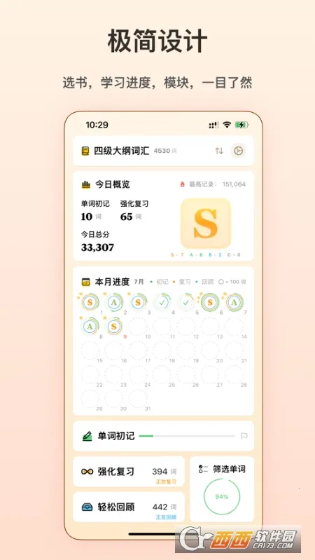 1. 支持用户科学记忆更多单词,能查看自己的科学遗忘曲线,助力记忆巩固。