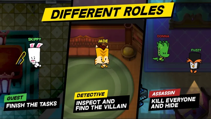 4. 具备多角色合作探案玩法,提供一系列风格可爱的卡通动物角色,与队友共同在神秘宅邸搜寻线索,揭开嫌疑人真面目。