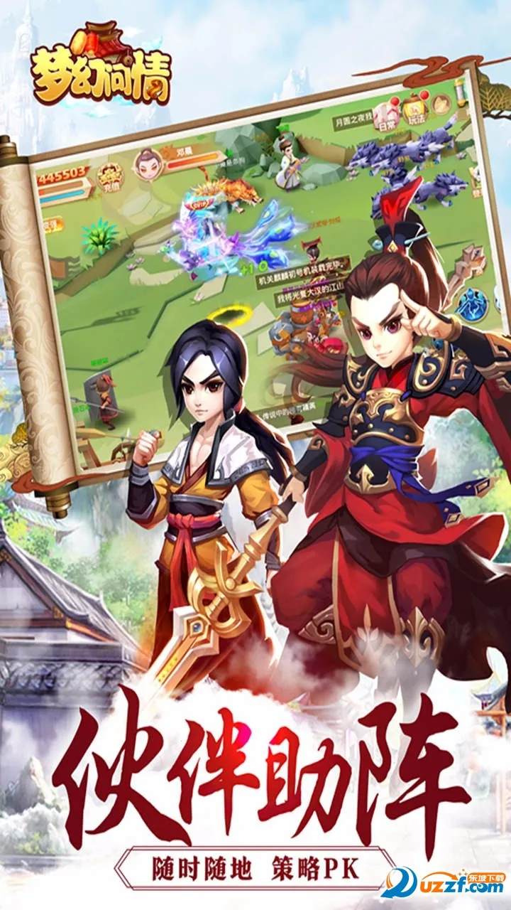 3. 玩法多样:伙伴武将策略搭配,智战天梯副本,多人同屏竞技,公会PK一触即发,世族玩法、琴棋书画、组队副本等多种玩法系统全面创新。