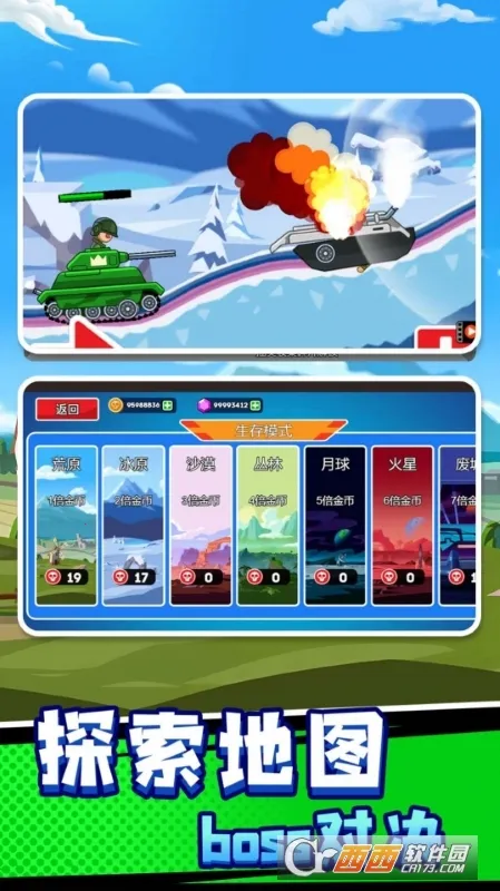 2、战斗获取经验升级战车与武器,提升战斗力,还能解锁更强大技能,不断成长挑战更强对手。