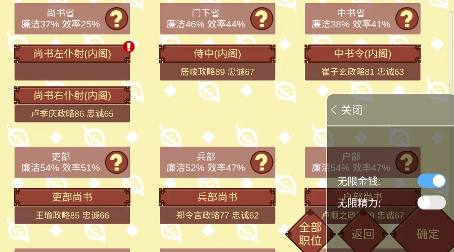 游戏里人际关系很重要,会影响结局哦。你能自由设定国号、年号等各种信息。前朝后宫关系错综复杂,专宠可能影响朝堂局势。你要认真对待政务,比如任命官员、处理提案。像开放科举,能选拔人才,但要说服不同官员可不容易。还有后宫攻略,教你如何纳妃、处理宫斗。通过这些攻略,能帮你轻松平衡朝堂与后宫势力,做出各种决策,感受女帝掌控天下的快感,享受独特的宫廷人生,快来开启你的女帝之旅吧!