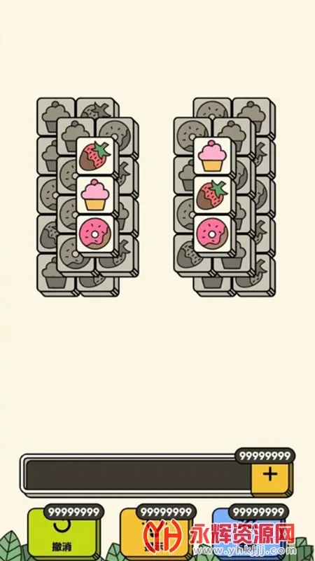 三个棋子是趣味休闲消除类游戏,玩法似羊了个羊却无难度飙升设定,是趣味闯关机制,难度渐升。能让玩家感受消除快乐与策略难度,随关卡推进解锁多样妻子图案,如水果花朵等,还有多种特色玩法。