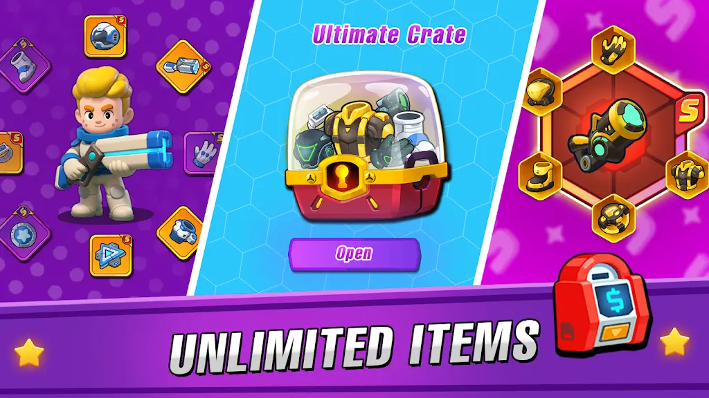 提供一系列酷炫且各具特色的未来武器,玩家可根据英雄特点灵活应用武器,制定独特战斗策略,享受战斗乐趣。