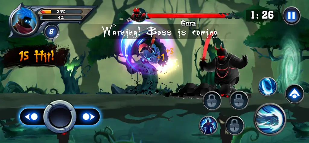 2. 直观操作:通过简单的左右拖拽实现角色自由移动,攻击机制具挑战性,需把握时机精确攻击,随着熟悉战斗节奏,战士可在地面和空中灵活穿梭,展示独特战斗风格。