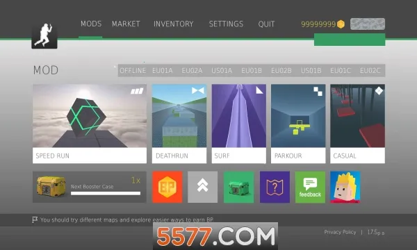 CS跳跃模拟器MOD菜单最新版本有不少实用更新。它能提升角色跳跃高度与滞空能力,让你跳得更高更远,轻松应对复杂地形。持续为角色提供前进动力,减少操作负担,玩起来更轻松。还能解锁商城道具、皮肤装备,像刀具、手套等,满足你的个性化需求。全程移除游戏内广告干扰,给你清爽的游戏体验。有了这些更新内容,能帮你更好地掌握游戏中的跳跃技巧,在各种地图关卡中更顺畅地冒险。不管是练习身法,还是挑战高难度地图,都能更得心应手,尽情享受CS跳跃模拟器带来的跑酷乐趣,还能和好友联机比拼,看看谁才是跳跃之王。