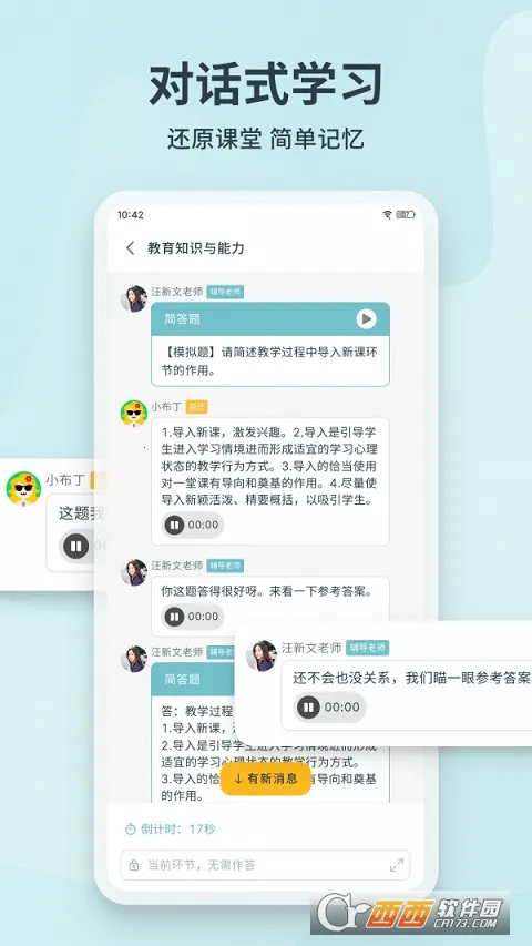 对话式学习:靠岸独创对话式学习模式,AI老师模拟真实课堂场景,以互动问答形式引导用户限时记忆知识点并完成题目练习,告别枯燥背诵。