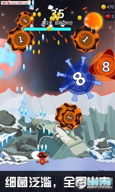 3、一款制作精良的射击小游戏,核心在于操控注射器精准消灭不断出现的病毒。