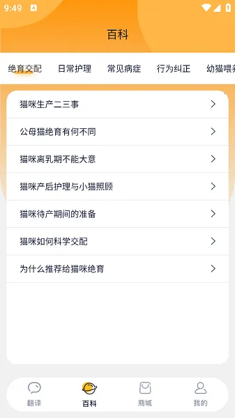 2. 养猫知识库:提供全面的猫咪养护指南,涵盖饮食、行为、健康等多个方面。