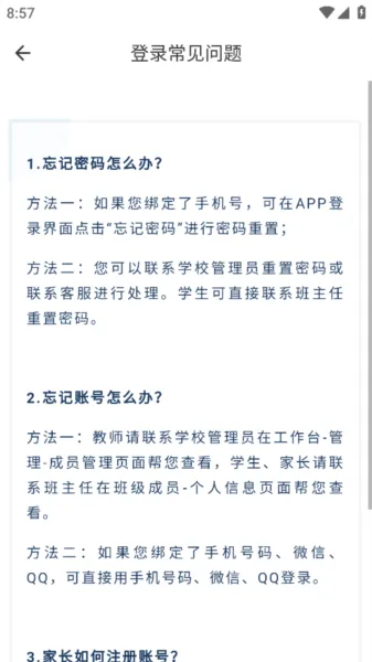 3. 家校沟通便捷顺畅,支持即时通讯,内置完整通讯录,可快速创建班级群组,集成统一登录入口,操作简化,待办事项实时提醒。