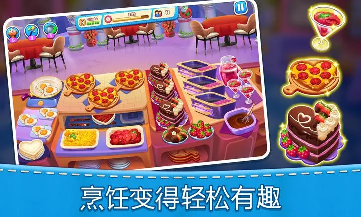 2. 多样玩法体验:观察顾客订单需求制作食物,完成营业目标,在限时内送达,还能解锁更多食材和厨具提升出餐速度。