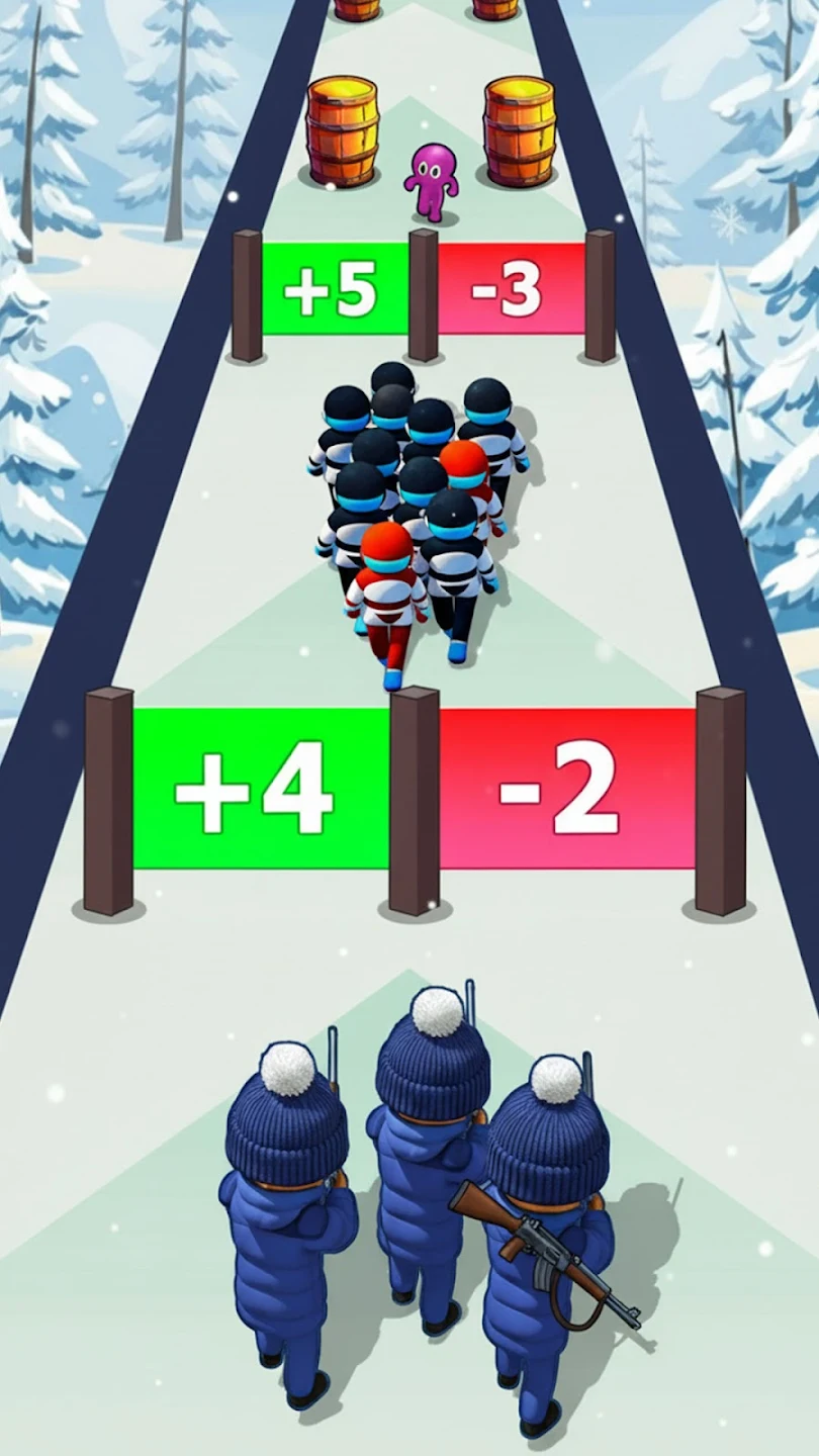 人群冲突大战能满足你对激烈战斗与刺激体验的需求。在这个游戏里,你将带领火柴人军队展开快节奏的冒险。扩充队伍,在 3D 跑酷中射击强盗收集金币,击败敌人。奔跑、闪避、战斗,穿梭于色彩缤纷的 3D 世界,每一扇门都可能改变命运。每一关都有更强的敌人和更激烈的战斗,持续给你带来刺激。而且它支持离线游玩,无论你是喜爱火柴人游戏还是跑酷游戏、动作游戏,都能在这里获得持续的刺激和奖励。它解决了你渴望体验紧张刺激战斗、享受快节奏游戏过程的问题,让你随时随地沉浸在充满挑战与乐趣的游戏世界中,无需担心网络问题,尽情享受游戏带来的欢乐。
