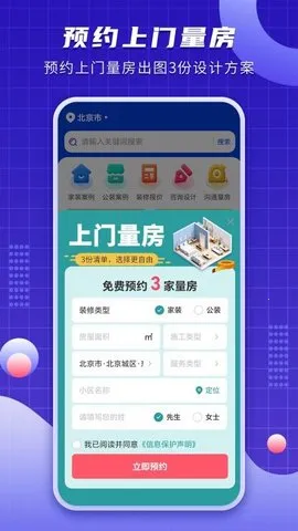 户型图设计最新手机版是一款聚焦家庭装修全流程的服务平台,提供从户型改造到施工落地的全链条解决方案。有海量案例库,支持上门量房、多方案对比等,适配多种装修场景,助用户解决装修难题,节省成本。