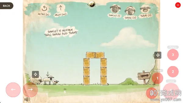 2. 操控三只特性各异的小羊,它们体型不同、特长有别,玩家要巧妙分配任务,善用其特长来破解难题。