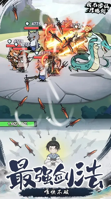 我不修仙只练剑是一款模拟修仙冒险游戏,有独特修仙剑道玩法,可放置挂机提升修为。玩家专注剑道修炼,穿越奇幻场景,体验剑术战斗,还有多样玩法模式,能结交仙友组建剑派,自由探索仙界。