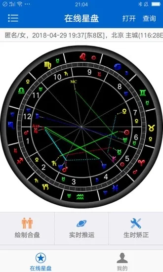 操作简单,支持多种打开星盘方式,还有详细解盘列表,能随时在线查询查看。