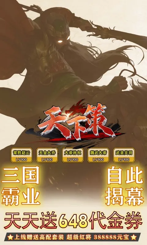 天下策安卓版是一款三国策略卡牌手游,以海量卡牌收集为核心,凭武将技能自由组阵。有Q萌画风、影视级画质。具卡牌养成、策略对战等模式,登录送神将,还有新版特性如MOD开局、买断特权等超多福利。