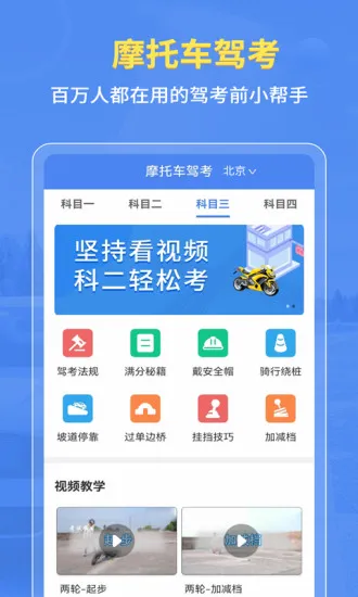 摩托车驾考百科专为摩托爱好者及考驾照人士设计,提供全面摩托知识。功能板块清晰,可针对性练习。有离线做题、题型多变等特色,含错题收藏、路考视频指导,助用户轻松掌握驾驶技能,顺利通过考试。