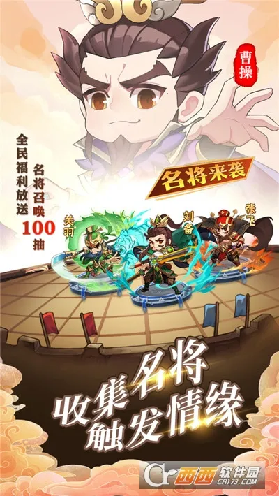 这是一款融合放置挂机与策略塔防的三国题材卡牌手游。游戏以Q萌画风呈现三国世界,玩家收集养成名将组建军队,通过策略战斗。玩法丰富,有跨服对战、天梯排位赛等。武将组合多样,如魔将组合、吴国神将组合等。特色鲜明,放置挂机可轻松升级拿海量资源;跨服对决紧张刺激;活动福利多,上线领五星武将等。将军府功能实用,融合、回退、置换、归元各有玩法攻略。战斗技能展现完美,能轻松组合。全程可放置,解放双手。全新放置挂机玩法让扫荡副本爽快,给玩家带来前所未有的游戏体验,是一款值得一玩的三国卡牌游戏。