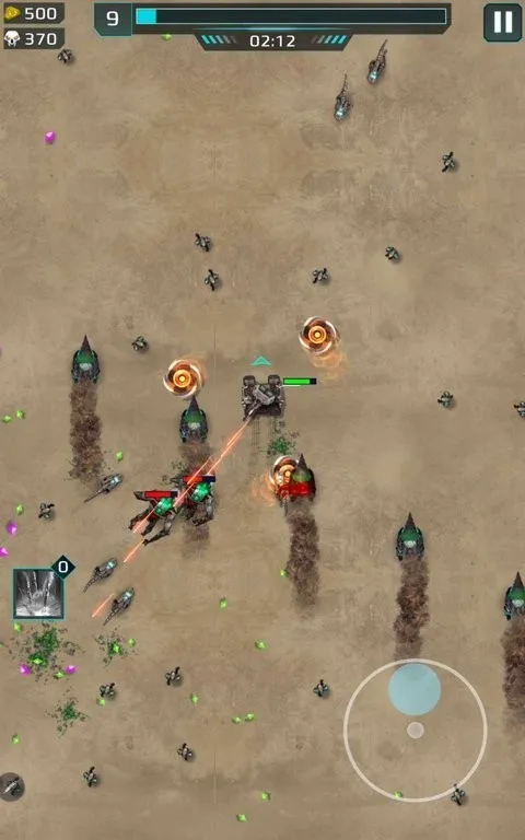 攻略方面,拖动虚拟摇杆控制角色,怪物多就释放强力技能。优先选钻石资源丰富的路线,遇到大型怪物先躲,有技能再尝试挑战。开始前可用金币升级坦克提升战斗力。